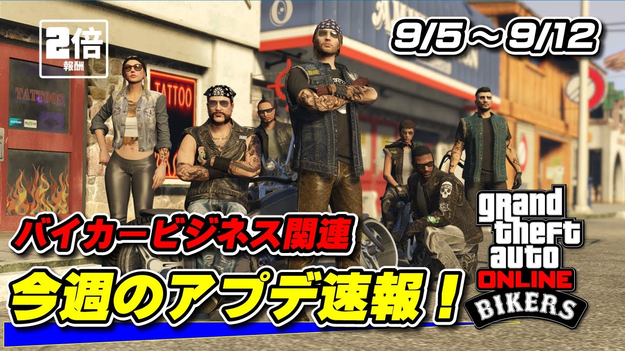 GTAオンラインの今晩の週アップデート速報です。今週はバイカービジネス関連が報酬アップ、割引となっています。
